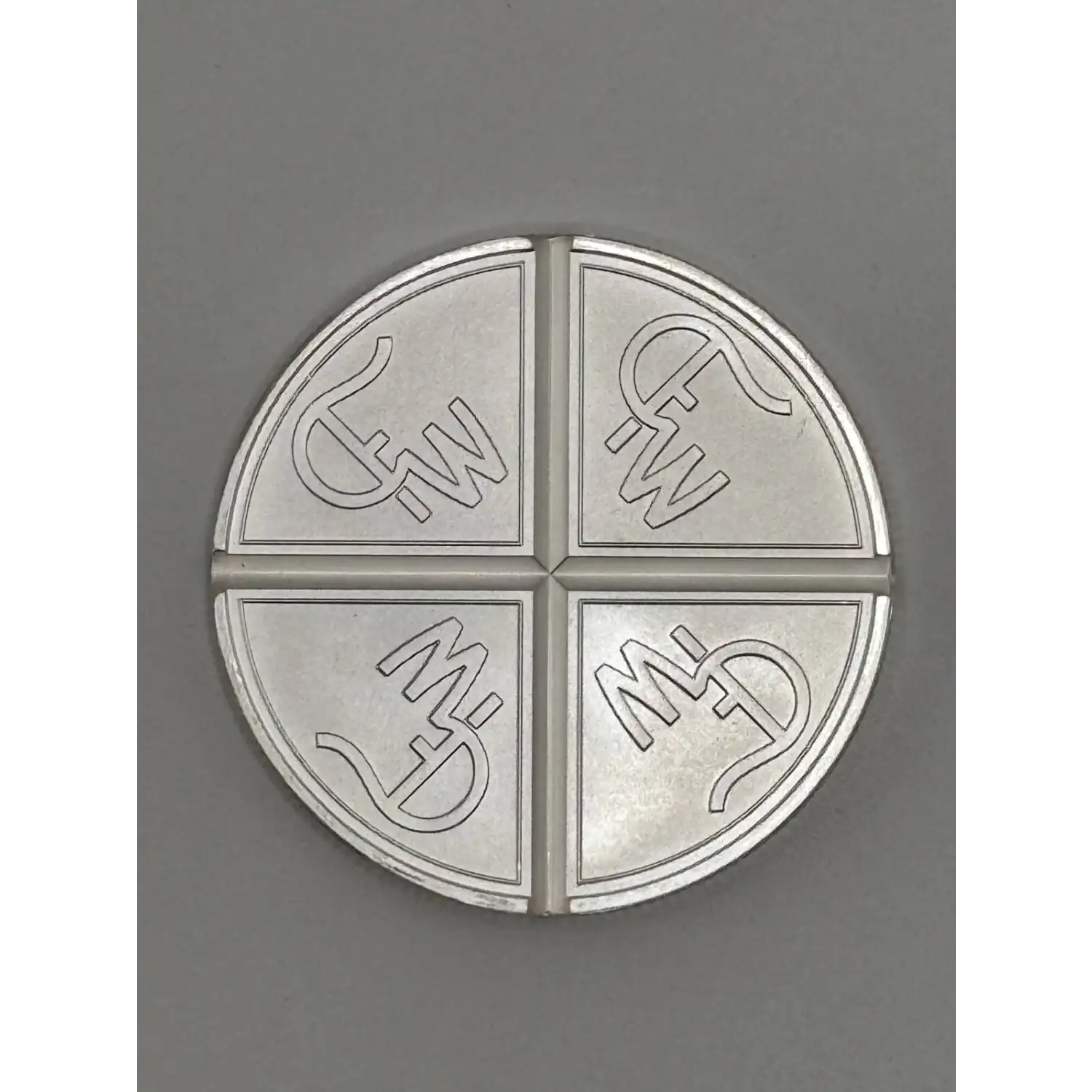 A silver double divisible coin is a specially crafted silver coin designed to be physically split into smaller, equally valued parts. Each segment retains a proportional share of the coin's original value and can be reassembled seamlessly. While not standard currency, they resemble puzzle coins or historic split coins used for fractional transactions.