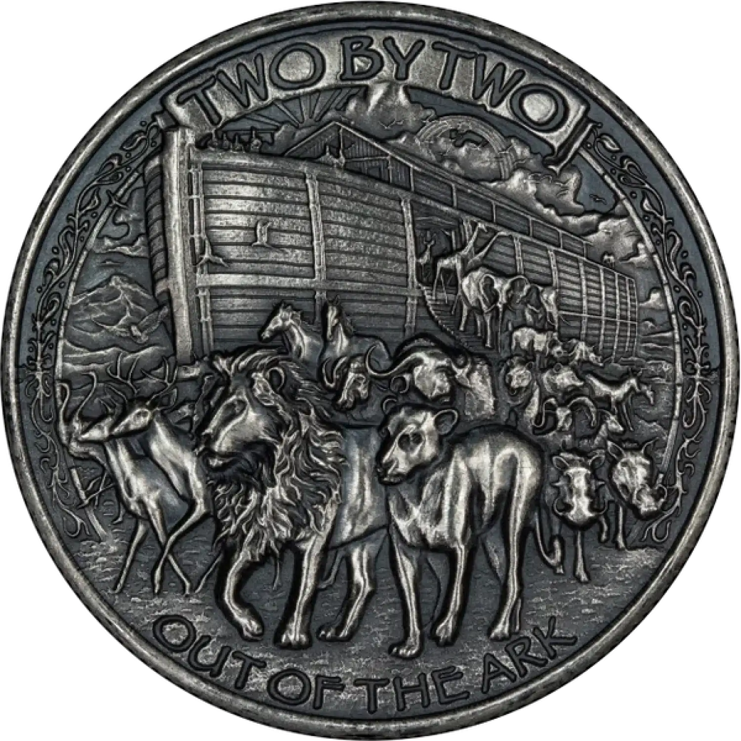 The 1 oz Silver Round - Noah's Ark (Antique) is a stunning piece of numismatic art that pays tribute to one of the most iconic stories in history. Crafted from high-quality .999 fine silver, this round is not only a beautiful collectible but also an excellent investment opportunity for silver enthusiasts and collectors alike. The antique finish adds a unique touch, giving it a vintage appearance that enhances its appeal. Whether you are a seasoned investor or a newcomer to the world of precious metals, this silver round is a fantastic addition to any portfolio.
