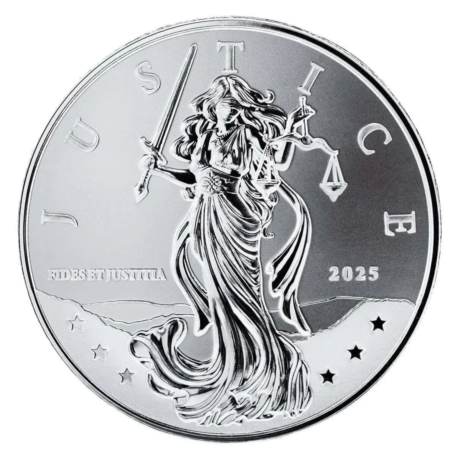 With its brilliant luster and exceptional design, the 2025 1oz Niue - Lady Justice Silver Round stands out in the market. Whether you're a seasoned collector or a first-time buyer, this round represents a sound investment and a visually captivating piece to admire.