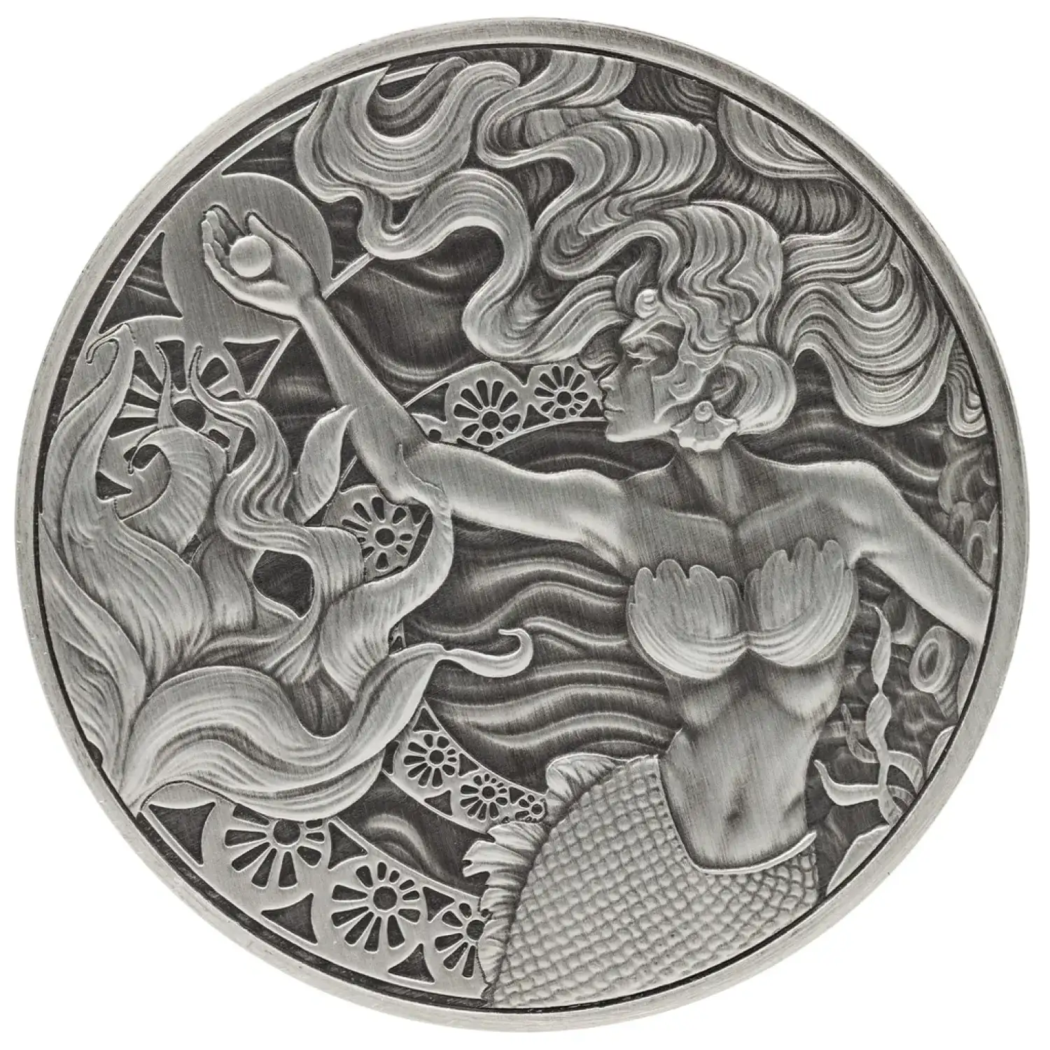 Introducing the exquisite 2025 1 oz Samoan Mermaid & Pearl Antique Silver Coin, a stunning addition to any numismatic collection or investment portfolio. Crafted with the utmost attention to detail, this coin captures the enchanting beauty of mythical underwater realms, featuring a mesmerizing mermaid cradling a lustrous pearl. Perfectly blending artistry and precious metals, this coin serves not only as a piece of art but also as a vehicle for wealth preservation.